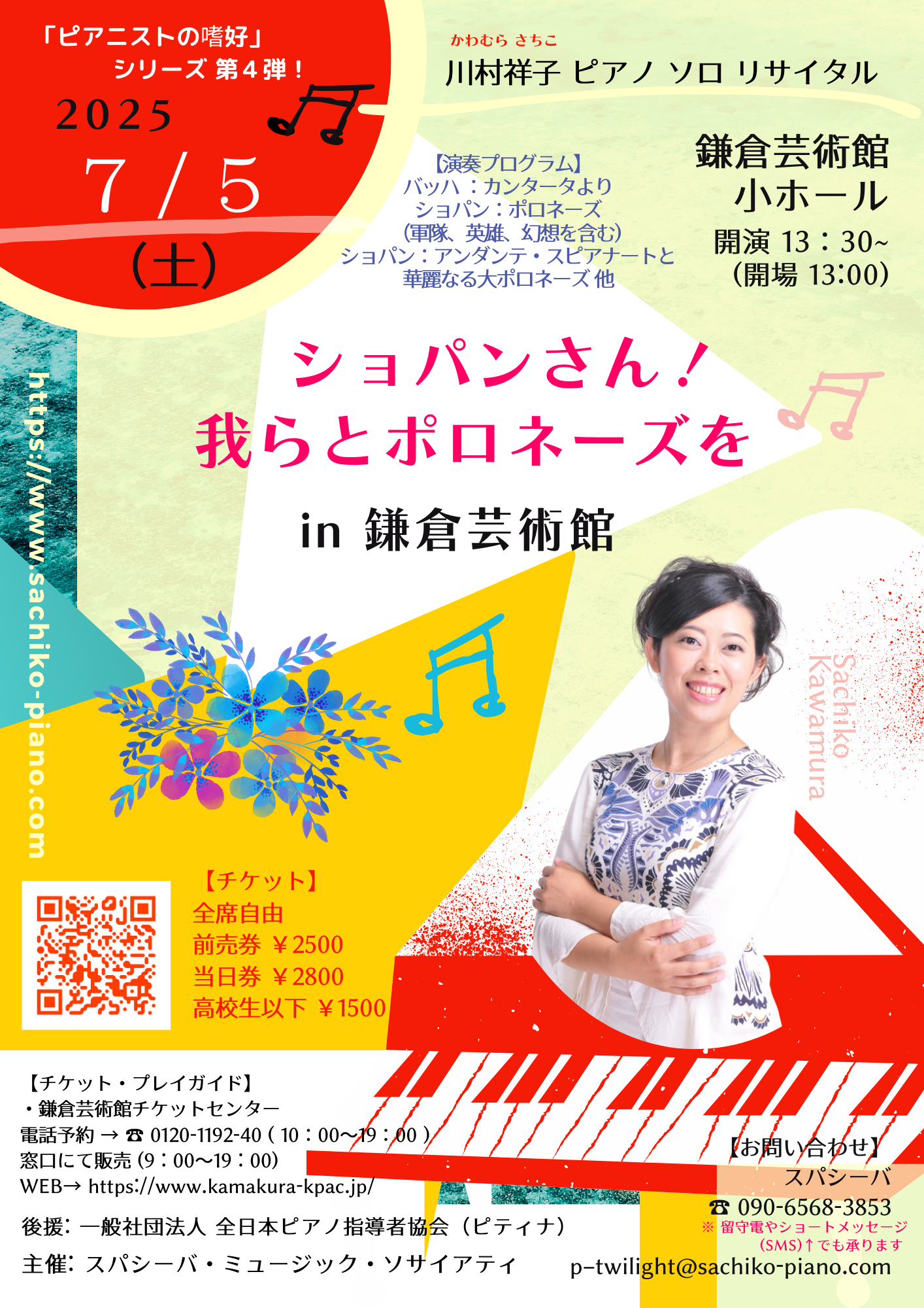 2025年7月5日(土)、ソロ・リサイタルを予定しております。ご予定に入れていただけましたら嬉しいです。