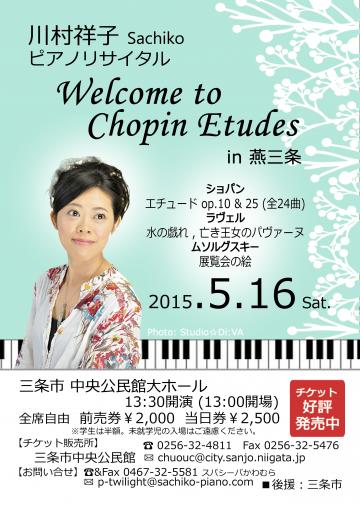 この度、当地で初めてのリサイタル「Welcome to ショパン Etudes」(全24曲)を弾かせていただくことになりました。素適な曲がいっぱいつまったショパンのとても有名な練習曲(エチュード)です。