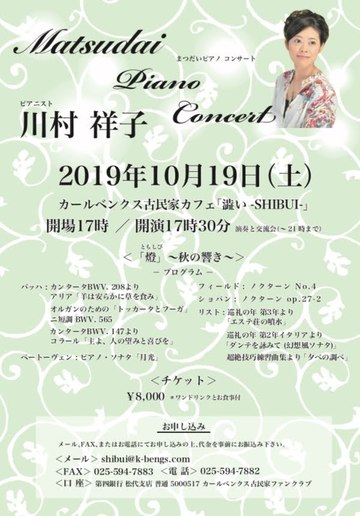 日時:2019年10月19日(土)午後5時30分開演
